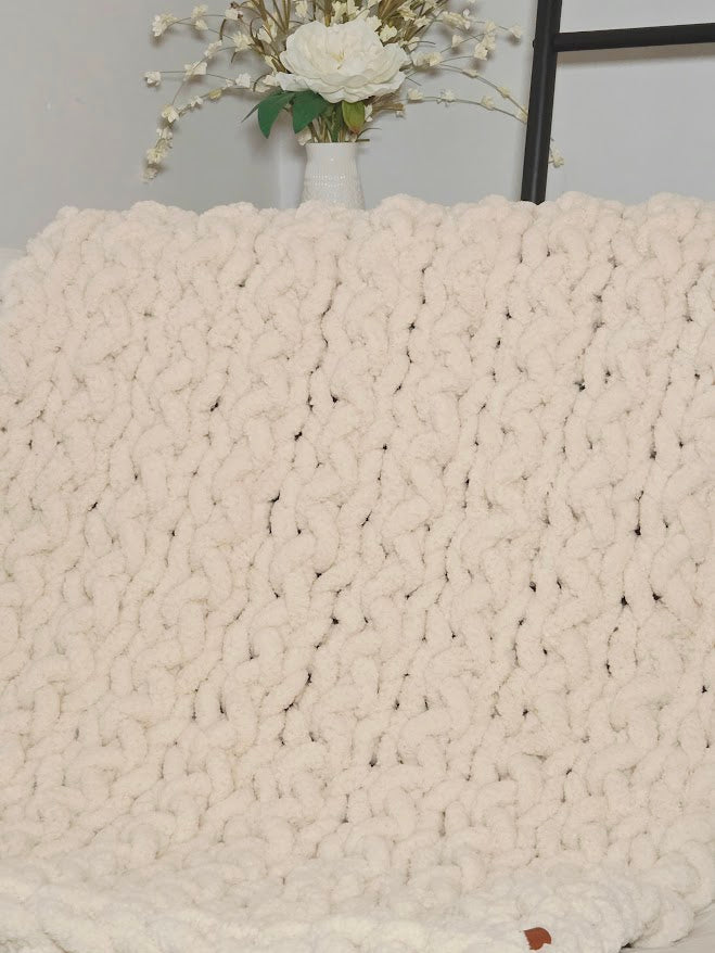 Beautiful handmade cozy chunky-knit baby blanket.
